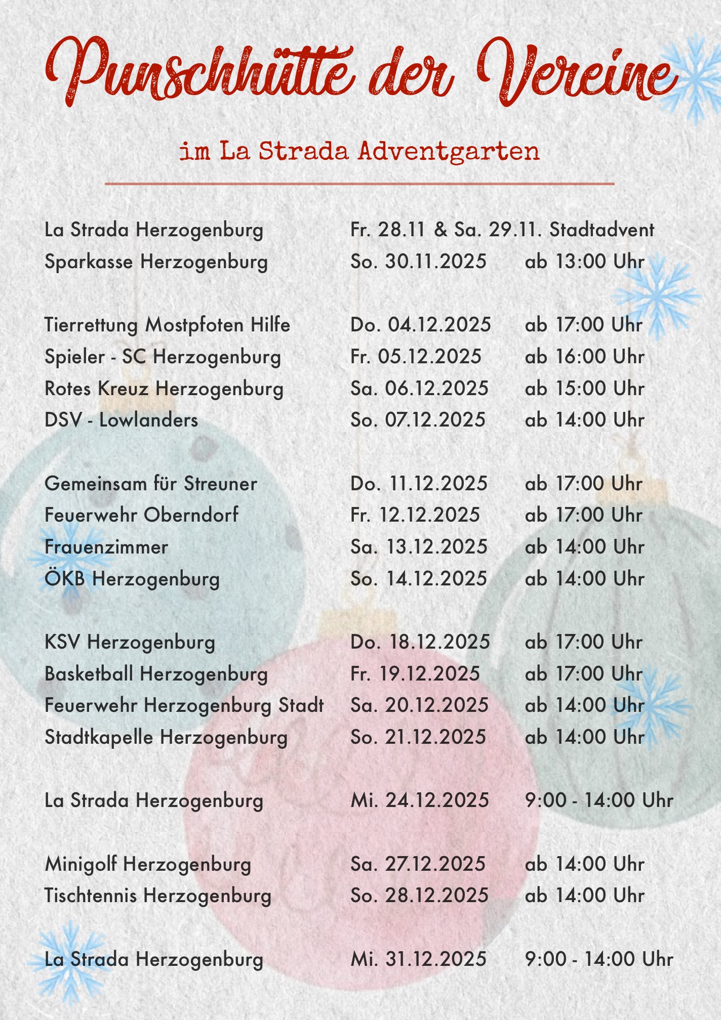 Dienstag - Freitag